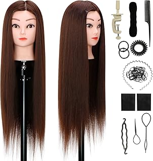 Frisierkopf Übungskopf 24 Zoll Trainingsköpfe für Friseure 100% Synthetischem Haar Friseurkopf Puppenkopf OGUJA Perückenkopf Cosmetology Mannequin mit Halterung + Haar Zubehör Styling