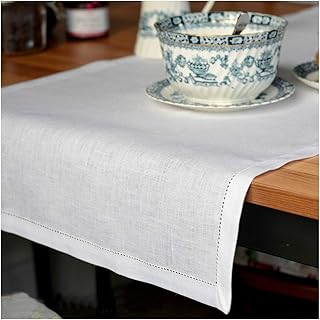 Linen & Cotton Hochwertiger und Eleganter Tischläufer Stoff/ Tischband mit Hohlsaum Florence - 100% Leinen, 43 x 270cm ( Weiß/ Weiss ), Ideal für Hochzeit Gastronomie Hotel Restaurant Cafe Catering Vereinsfeier Geburtstagsfeier