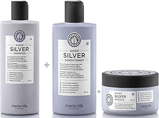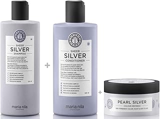 Style: Mask - Fl Oz 8.5 . $23.14 ($2.29 / Ounce) $9.79 ($2.88 / Fl Oz) Maria Nila Sheer Silver Masque 250 ml - Moisturizing Hair Wrap with Violet Pigment for Blonde Hair. 100% Vegan. Sulfate-free and Paraben-free. Contact your health-care provider immediately if you suspect that you have a medical problem. Information and statements This item: Maria Nila Sheer Silver, Neutralizes Golden Shades, Violet Pigments Gives Cool Tone, 100% Vegan & Sulfate/Paraben free $32.00 ($3.17/Ounce) Maria Nila True Soft Conditioner 10.1 Fl Ozl, For Dry Hair, Argan Oil Remoisturises & Reduces Frizz, 100% Vegan & Sulfate/Paraben free $32.00 ($3.17/Fl Oz)