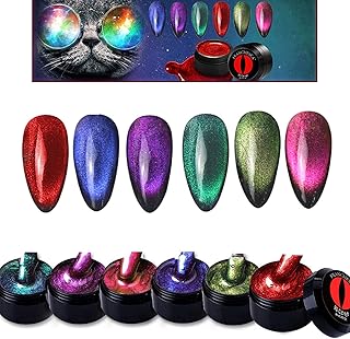 YONGQING 6 Stück 9D Galaxy Cat Eyes Nagellack Cat Eyes Farbe LED UV UV Gel Nagellack glänzend abglänzen, Need Black Base Coat, 8 ml