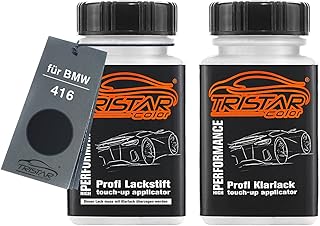TRISTARcolor Autolack Lackstift Set für BMW 416 Carbonschwarz Metallic Basislack Klarlack je 50ml