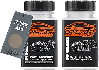 TRISTARcolor Autolack Lackstift Set für BMW A09 Amethystgrau Metallic Basislack Klarlack je 50ml