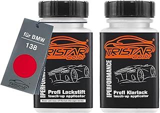 TRISTARcolor Autolack Lackstift Set für BMW 138 Zinnoberrot Basislack Klarlack je 50ml