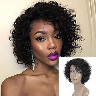 UDU Kurzhaar-Perücke für schwarze Frauen, lockiges Haar, Bob-Perücke, ohne Spitze, für schwarze Frauen, kurz, lockige Bob-Perücke, billige Perücke mit Pony, brasilianisches Haar