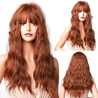 Faffooz Perücke Lockige Perücke 24 Zoll Lange orange Damenperücke Natürliche Synthetische Perücke für Frauen Modische Perücke mit Pony, Perücken für den Täglichen Gebrauch, Party