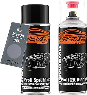 TRISTARcolor Autolack 2K Spraydosen Set für Mazda 36L Lilac Silver Metallic/Thelestosilber Metallic Basislack 2 Komponenten Klarlack Sprühdose