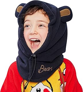 Kinder Strickmütze für Jungen und Mädchen, mit Tier-Kapuze, Schal, Set aus Fleece-Innenfutter, Mütze, Mütze mit 2-8 Jahren