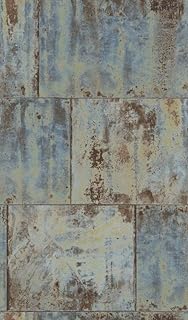 Rasch Tapeten 939712 Vliestapete mit Grauer Stahl-Optik – 10,05m x 53cm (L x B) Vlies Tapete Rasch Kollektion Factory III, Blau, 10,05-0,53