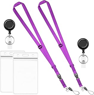Ausweishalter mit Umhängeband, Schnellverschluss, abnehmbare Schnalle, verstellbares Umhängeband, vertikal, wasserdicht, rutschfest, 2 Stück 2 pack purple lanyard +2pack badge holder 2 Pack-purple
