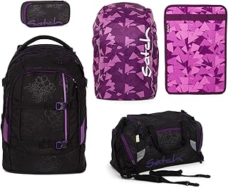 Unbekannt Satch Pack Schulrucksack-Set 5-teilig Rucksack + Sporttasche + Schlamperbox + Regencape & Heftebox Purple - Purple Hibiscus