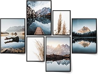 BLCKART Paradise Mountain Bilder Set Stilvolle Beidseitige Berge Bilderwand Natur Landschaft Wohnzimmer Deko Poster (L | 4x A3 | 2x A4 | Holzrahmen (schwarz), Paradise Mountain)
