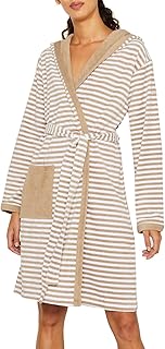 ESPRIT Damen-Bademantel Striped Hoody mit Kapuze Leichtfrottier