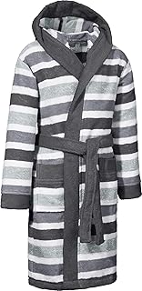 Erwin Müller Kinder-Bademantel mit Kapuze Frottier grau Größe 158/164 - saugstark, hautfreundlich, mit Taschen und Bindegürtel, Streifen (weitere Größen)