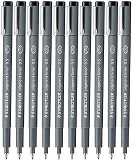 Staedtler 0,5 mm Pigment Liner Fineliner Zeichenstifte zum Zeichnen und Stifte 10 Flach Wischer Satz Set Premium