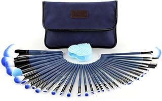 Glow Blue Makeup Brushes Set - 34-teiliges Make-up Brush Set mit Make-up Pinsel Cleaner/Scrubber Für Make-up für Gesicht und Augen - Wildleder-Stoffetui - Handy Cosmetic Makeup Kit - Blaue Farbe