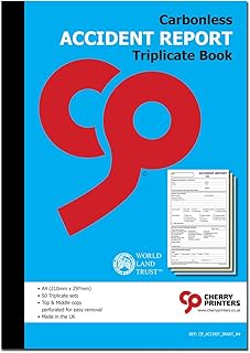 Cherry Unfallberichtungsbuch mit 3 Durchschlägen, selbstdurchschreibend, A4, 50 Sets