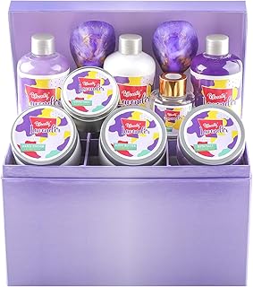 Bff Beauty Spa Sets für Frauen, Geschenk, 12 Stück, Lavendel-Bad-Arbeiten, entspannende Schönheitsgeschenke, Schmuckbox-Sets für Frauen, Badesalz-Set, Geburtstagsgeschenk-Sets für Sie