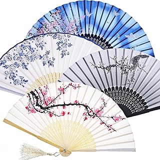 4 Stück Faltbare Fächer Handfächer Bambus Fächer mit Quaste Frauen Hollowed Bamboo Hand Holding Fans für Wanddekoration, Geschenke 4 Pieces, White Cherry, Blue Cherry, Blue Rose and Black Cherry